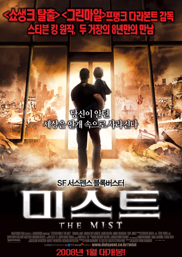 1. 드러내고 끔찍한 장면을 보여주기보다, 영화 제목과 같이 미스트, 즉 안개에서 스멀스멀 하나씩