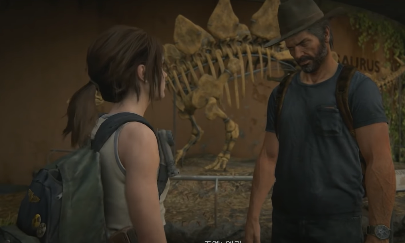 좀비 바이러스로부터 탈출 과정에서 자신의 소중한 딸과 아내를 잃어 비린 남자 주인공 조엘이